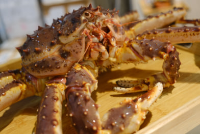 甘鮮甜美的帝王蟹,堪稱蟹中之王,是所有螃蟹中的極品,生長在海下200公尺~300公尺之間活動的牠,有著豐滿的肉餡與紮實的口感,雄壯的蟹管裡,塞滿了滿滿的蟹肉,讓人吃到簌簌叫!